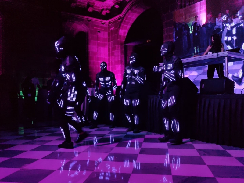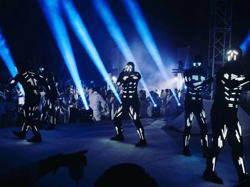 The perfect combination of the latest lighting technology, costumes, synchronized dance choreography and the best international dancers result in this unique, innovative and impactful show based on optical illusions. The well characterized artists in their light suits adapted to the event’s thematic, perform their dance on a darkened stage with black background. They become invisible and reappear within seconds in different locations of the stage, in a perfectly synchronized interplay of the lights.