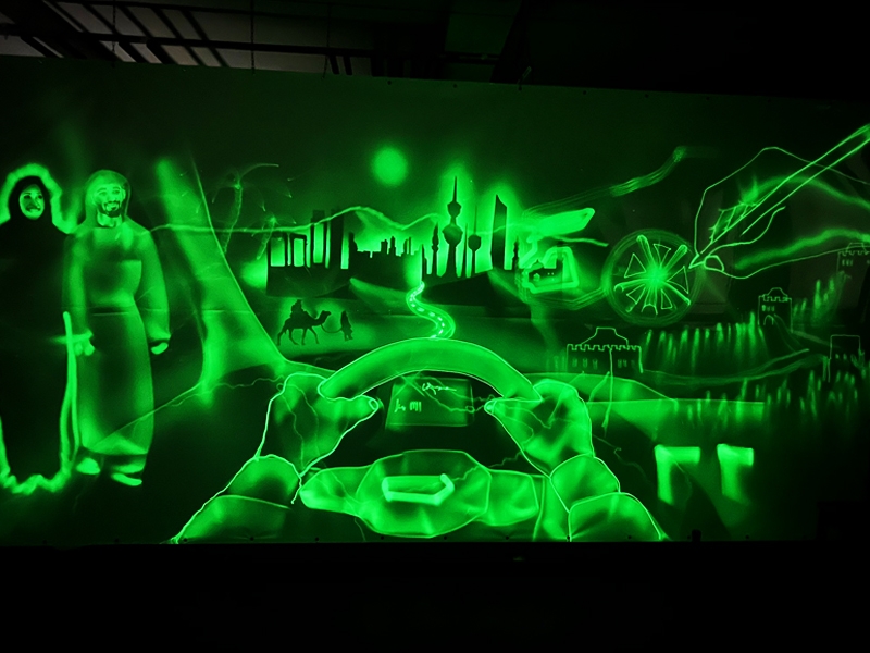 photo-luminescent canvas with very peculiar paintbrushes, lasers and torches. A dynamic and