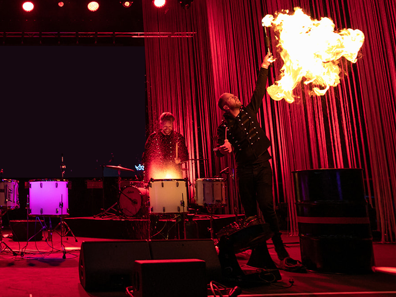 Performed by professional Dutch drummers, this dynamic show breaks away from convention, delivering an impactful 15 to 20-minute performance filled with modern rhythms. Combining high-energy drumming with stunning visual effects, these artists incorporate LED lights, water, and a dramatic finale featuring fire (performed exclusively outdoors). The synergy of these elements results in a truly spectacular and unforgettable experience