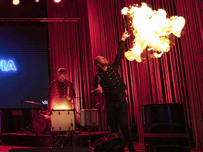 Performed by professional Dutch drummers, this dynamic show breaks away from convention, delivering an impactful 15 to 20-minute performance filled with modern rhythms. Combining high-energy drumming with stunning visual effects, these artists incorporate LED lights, water, and a dramatic finale featuring fire (performed exclusively outdoors). The synergy of these elements results in a truly spectacular and unforgettable experience