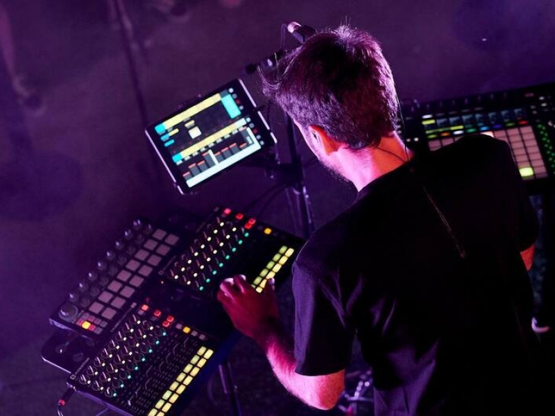 He composes live electronic music without traditional instruments, sculpting sound from objects, the human body, the voice, and the brand’s universe.
