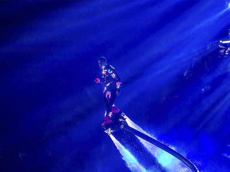 The key to developing these amazing choreographies is the pressure exerted on the water to reach the take-off & fly push. With the maximum control of the pilots on the vertical orientation of the water jets, they can reach up to 15 meters in the air or dive headfirst up to 2.5 meters into the water.