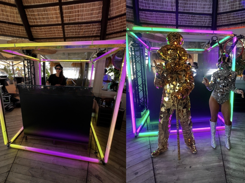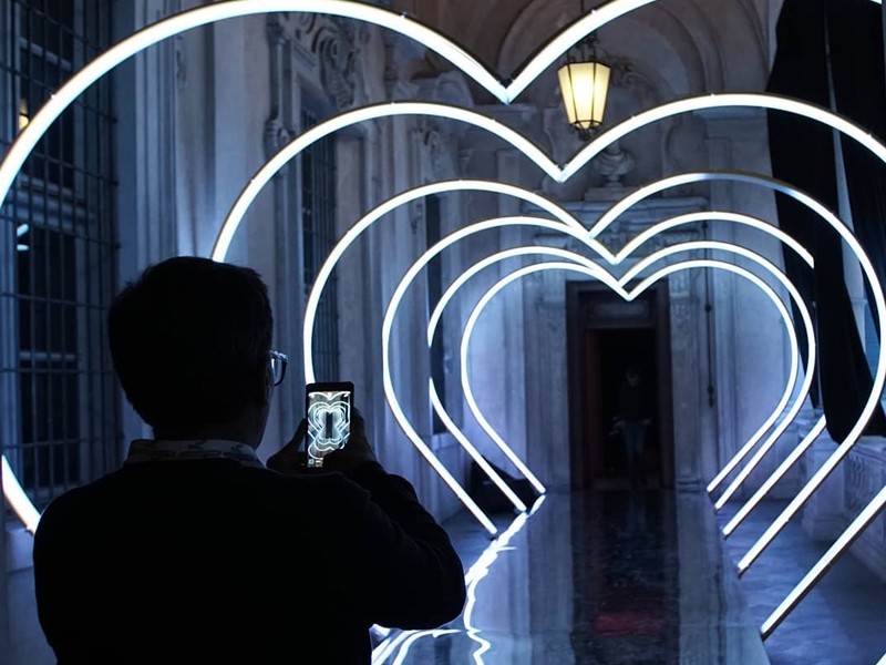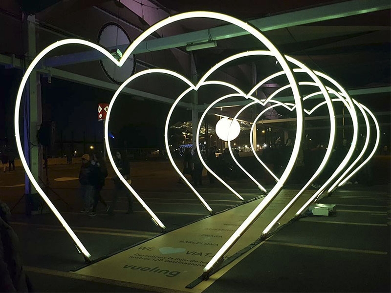 We propose an installation consisting of a large corridor of light formed by a succession of LED figures that create a composition of great beauty, through which guests can walk and take photos as a souvenir. A very striking and elegant proposal for your event.