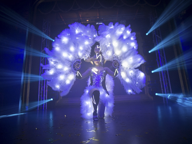 Enjoy the glamour and sensuality of cabaret with a futuristic touch that integrates LED technology and adds even more spectacularity to the event, without a doubt a show of great beauty.