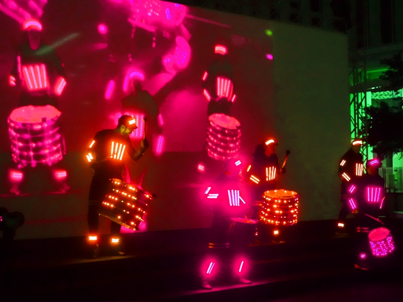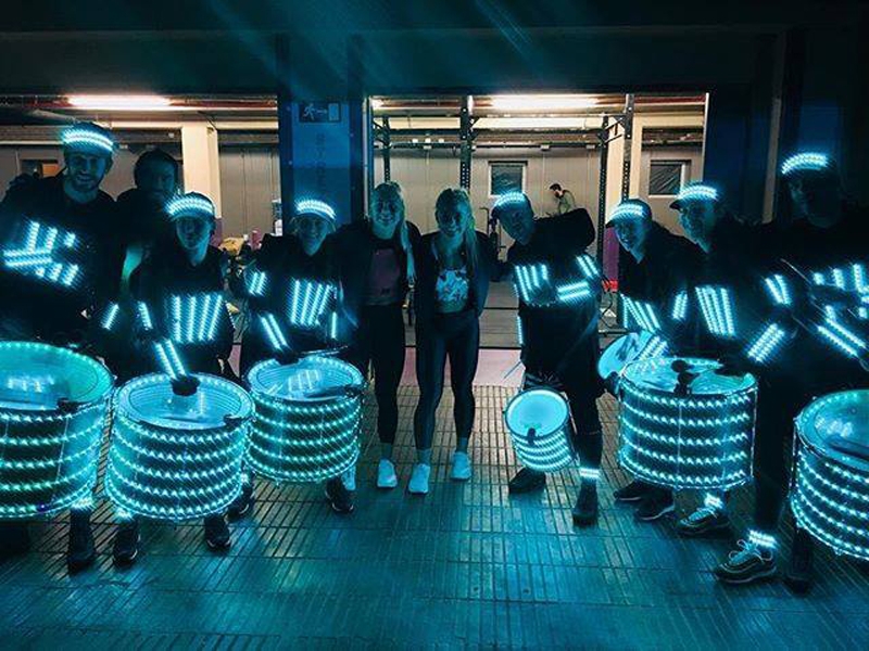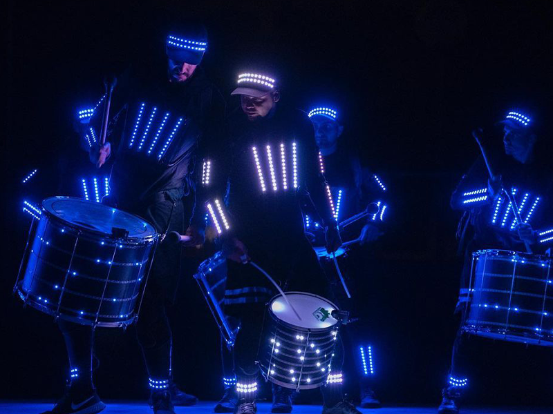 As the drums and percussions resonate to the beat of the "batucada", the LED costumes come to life with a dazzling display of visual effects. The colors and patterns displayed on the costumes are like a luminous dance that perfectly complements the energy of the group. The performers, enveloped in a halo of light, become otherworldly beings dancing to the infectious rhythm.