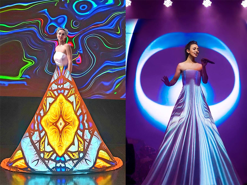 The Opera Mapping Dress is an innovative fusion of fashion and technology. It incorporates projection mapping technology to create a visually captivating experience during opera performances.