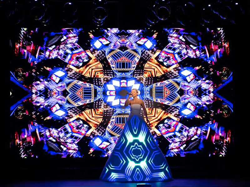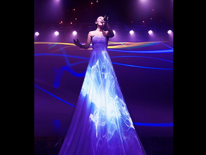 The dress responds to audio and visual cues, projecting dynamic imagery onto its surface. It enhances the storytelling and emotional impact of the opera, complementing the music, lighting, and choreography.