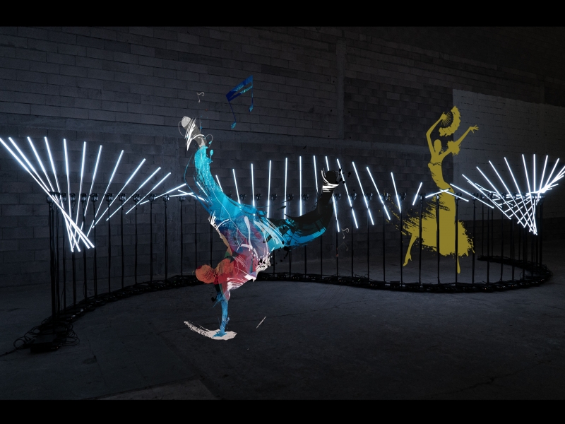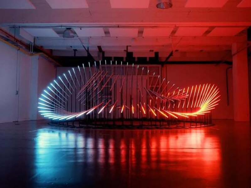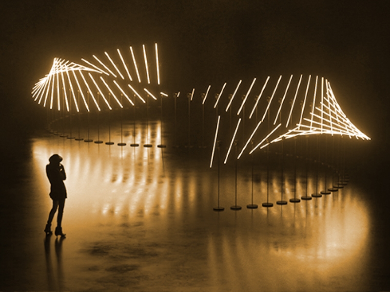 Imagine a light installation that completely transforms any space into a world of wonder and awe. This unique creation comes to life in a sinusoidal motion, like a snake of light that meanders across the stage or event, captivating your guests and leaving them spellbound.