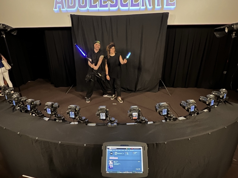 The Bullet Time Lightpainting Photocall is a ring-shaped truss installation equipped with 12 cameras that take a shot at the same time. Through the Lightpainters team of Creartys, led by Frodo DKL, a battery of photos will be made that will lead to a small animated video in 3D Lightpainting.