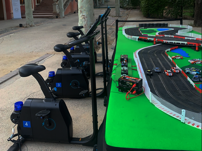 - Ecological Scalextric: Relive the excitement of traditional Scalextric using controls or pedaling our bicycles. The usual Scalextric played like never before.