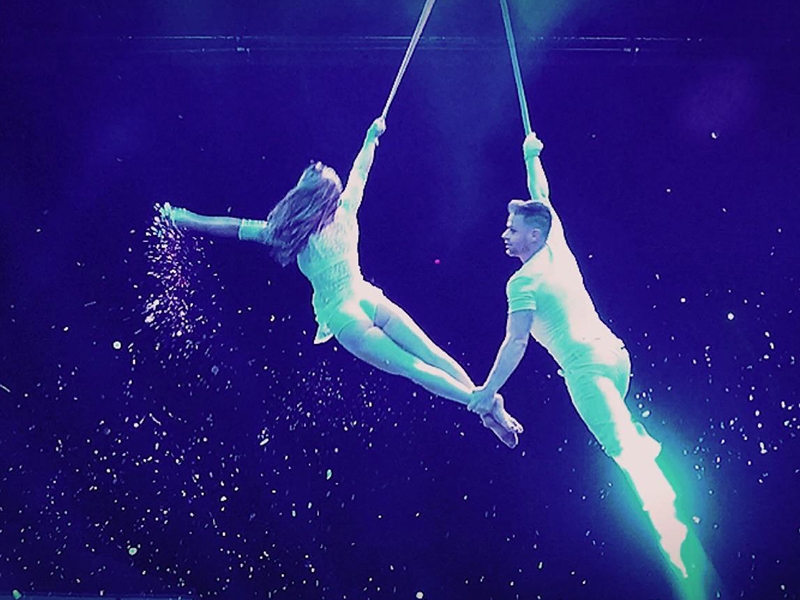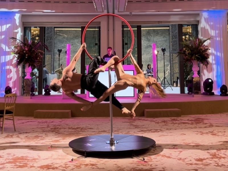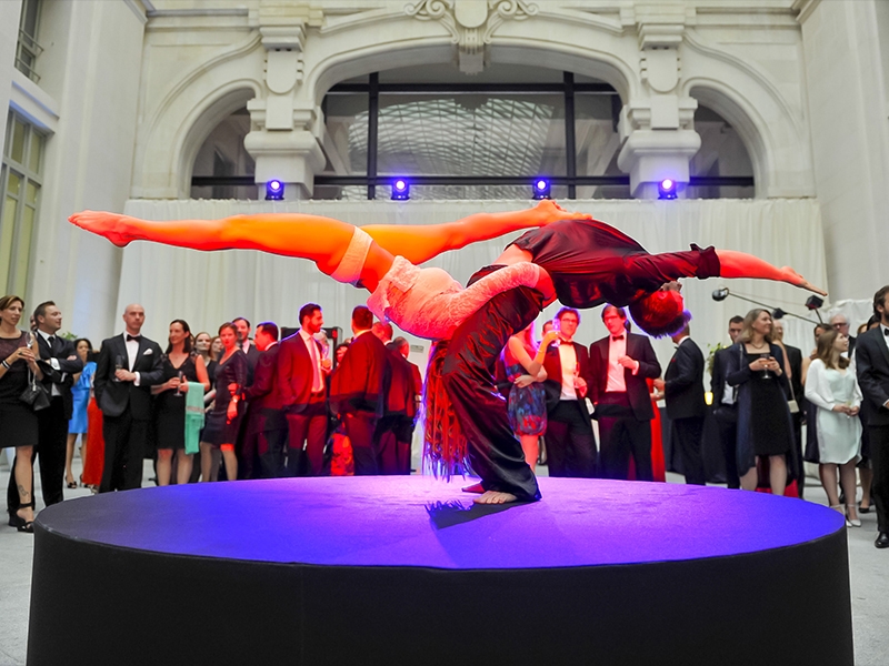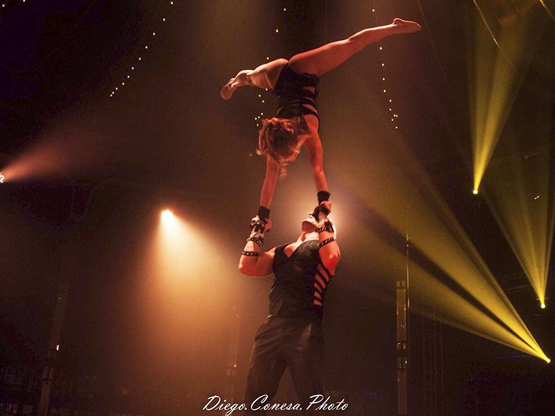 Great show performed by two artists who mix force and hand-balance. An original version is presented where the cards fly between acrobatics.