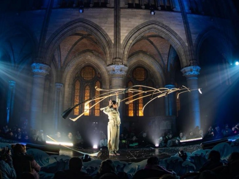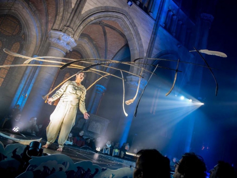 Balance, technique and art as a live performance are the key characteristics of this unprecedented show. Our artist is the backbone from which the creativity arises to accomplish a gigantic live sculpture integrated by palm tree branches supporting each other. It is an exciting proposal for the risks and difficulties involved, as any little distraction or change in its structure could make it break down.