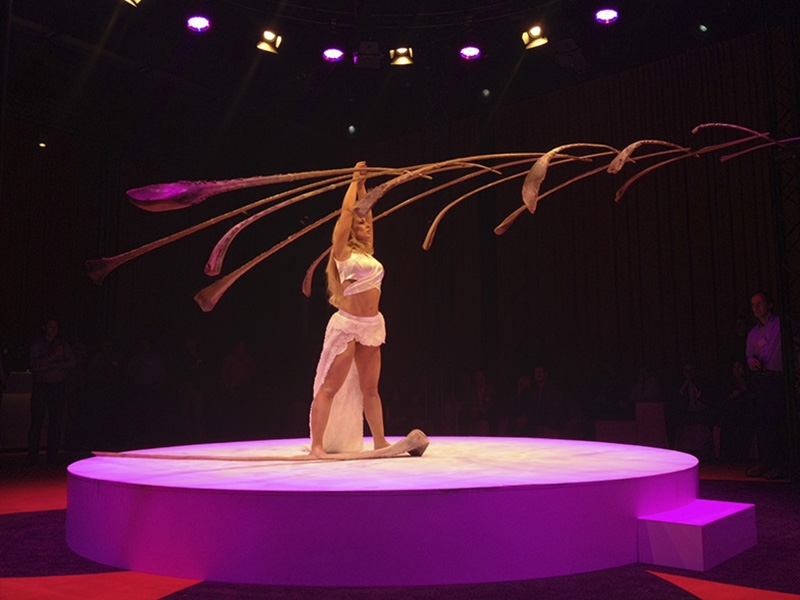 The resulting picture shows an improvised ecosystem as the extension of the limbs of the specialist, which also works as a metaphor of the importance of each element in order to accomplish big projects. It is an emotive and sensory journey inviting calm and reflection in a world that goes too fast. It is important to highlight that the performance is part of the Cirque du Soleil Amaluna show.