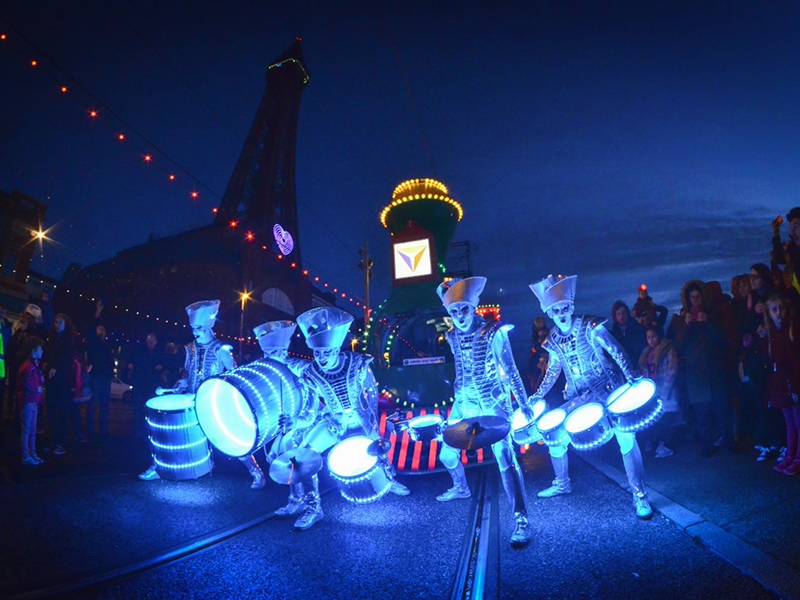 Shining Drummers offers a medium-scale street theatre show performed by 5 to 7 characters that combines high-impact drumming, dynamic choreography and beautiful lighting design.