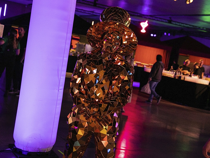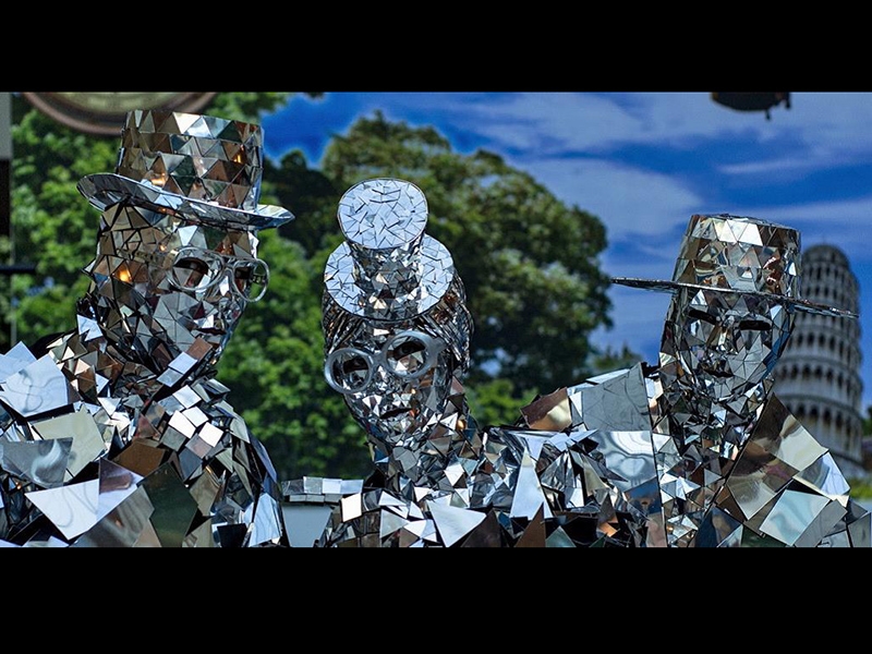 A perfect animation for any Festival. The artists would walk around between the visitors, giving emotion and mirroring ambiance. The sun will be reflected on the mirrors and will shine everywhere.