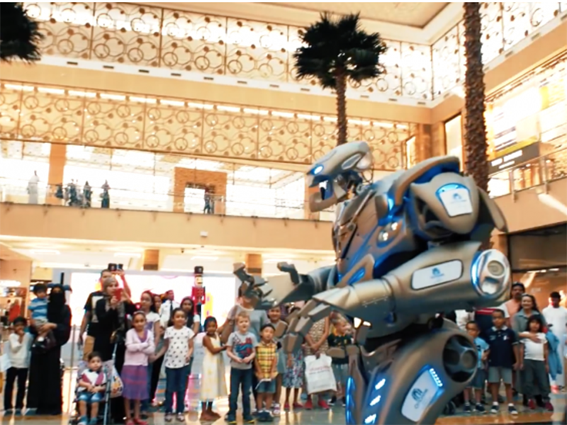 Giant Robot records and sends to its operator all data about his direct environment, so that the operator can take decisions about his coming moves. The robot imitates the moves of the operator, enabling moves very similar to a human being.