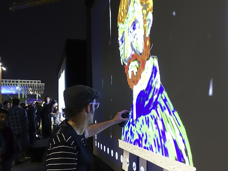 Revolution in the Speed-Painting shows with this performance that allows painting with cans lights. Indeed, Quim Moya, an expert in live painting performances, creates a series of visuals contents on a video-screen replacing his brushes by lights. Using a software program and a receptor placed behind the screen, it permits to change colours, textures and virtual painting effects in a same show. The result is a technological and artistic performance of last generation. Welcome to the era of digital art!