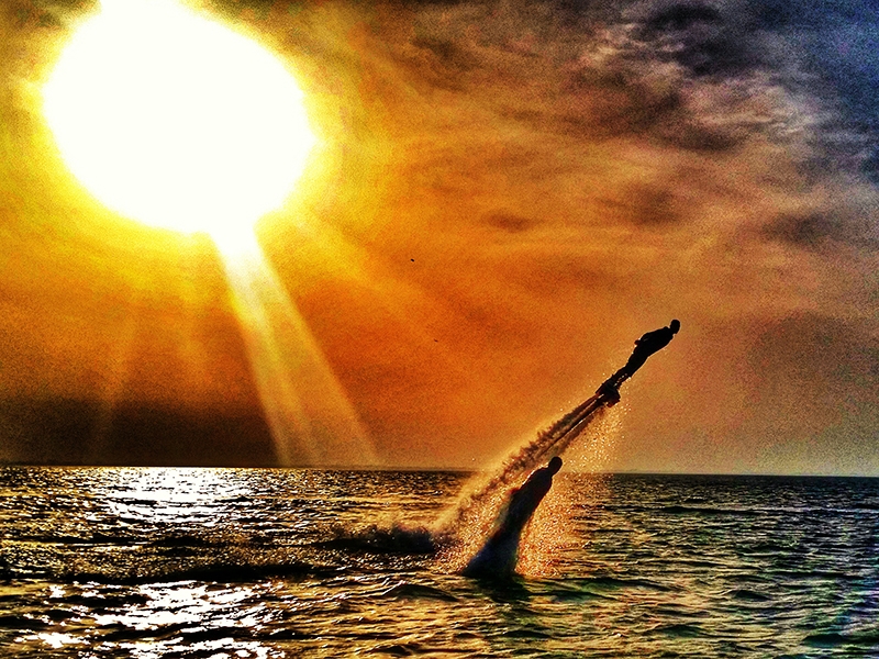 The key to developing these amazing choreographies is the pressure exerted on the water to reach the take-off & fly push. With the maximum control of the pilots on the vertical orientation of the water jets, they can reach up to 15 meters in the air or dive headfirst up to 2.5 meters into the water.