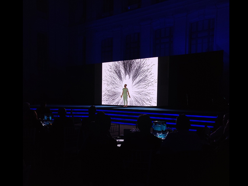 We cross the frontier between fantasy and reality to give a place and an interactives stage where the body and the background mimic each other. A mapping show that integrates technology as a way of expression. Each piece counts to evolve the next one in tune with the human side.