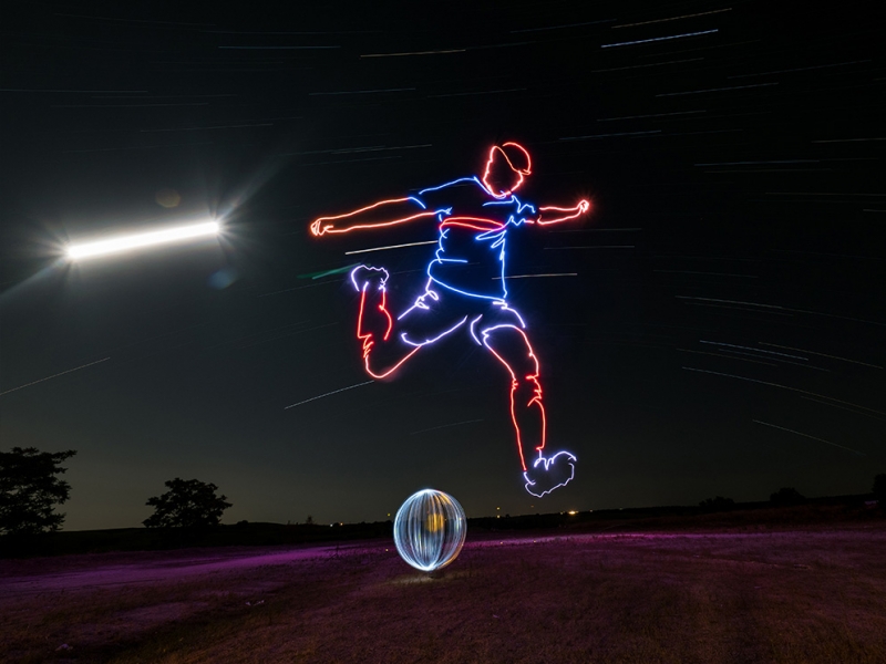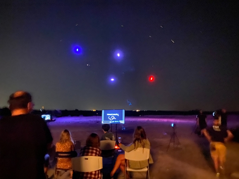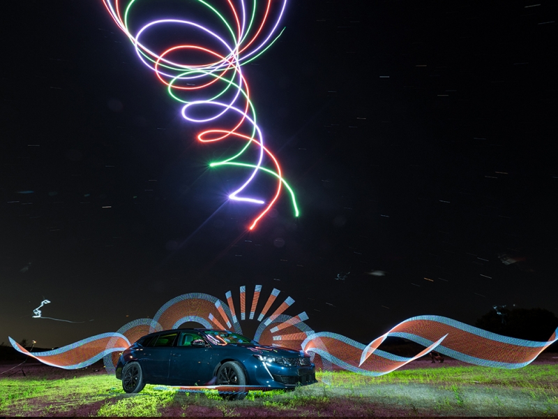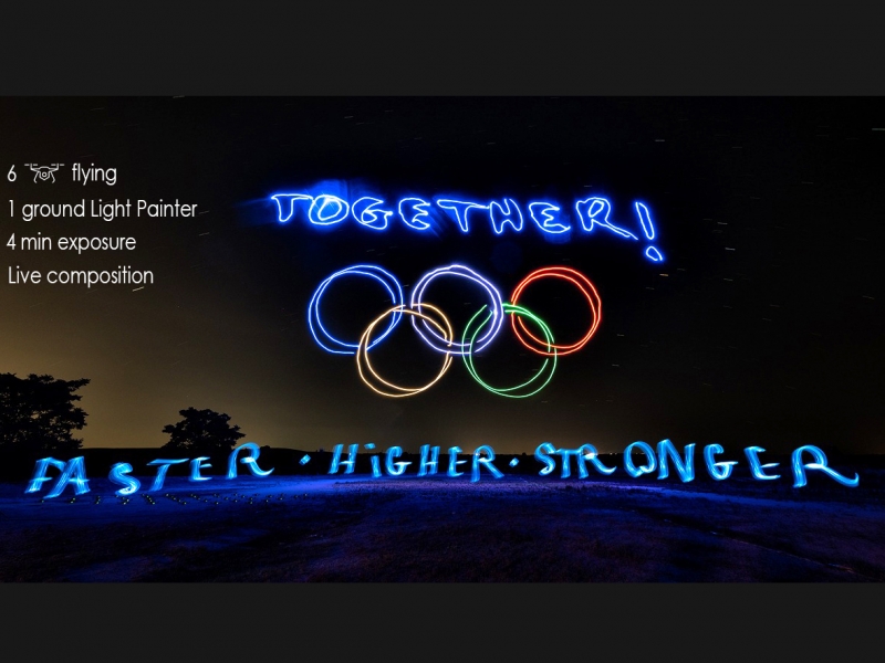 We mix the technology of drone programming with the Light-Painting technique that allows us to transfer on screen the path of the aircraft lights.