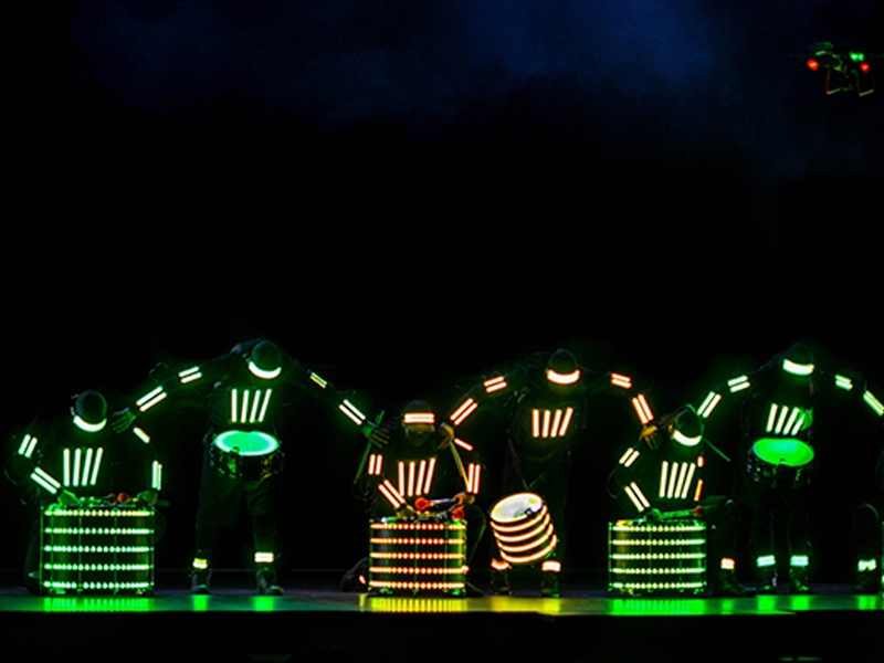 As the drums and percussions resonate to the beat of the "batucada", the LED costumes come to life with a dazzling display of visual effects. The colors and patterns displayed on the costumes are like a luminous dance that perfectly complements the energy of the group. The performers, enveloped in a halo of light, become otherworldly beings dancing to the infectious rhythm.