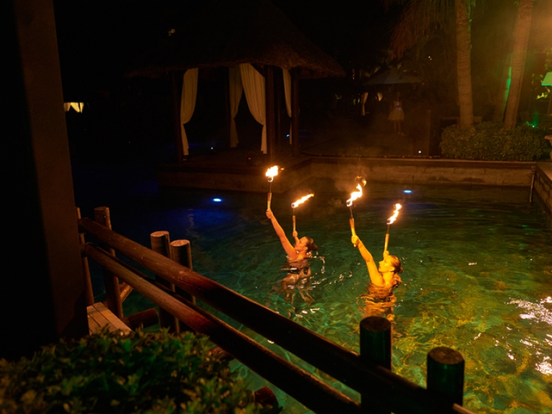 Our team of talented artistic swimmers, led by the amazing duo, combines the beauty of synchronized swimming with the thrill of fire. Watch as they perform stunning routines, seamlessly blending graceful water choreography with spectacular pyrotechnic displays. Artistic Swimming offers a unique and unforgettable experience that will leave you in awe.