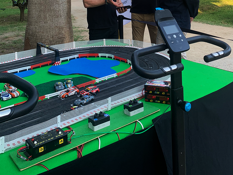 - Ecological Scalextric: Relive the excitement of traditional Scalextric using controls or pedaling our bicycles. The usual Scalextric played like never before.