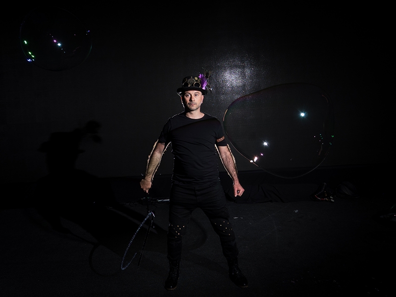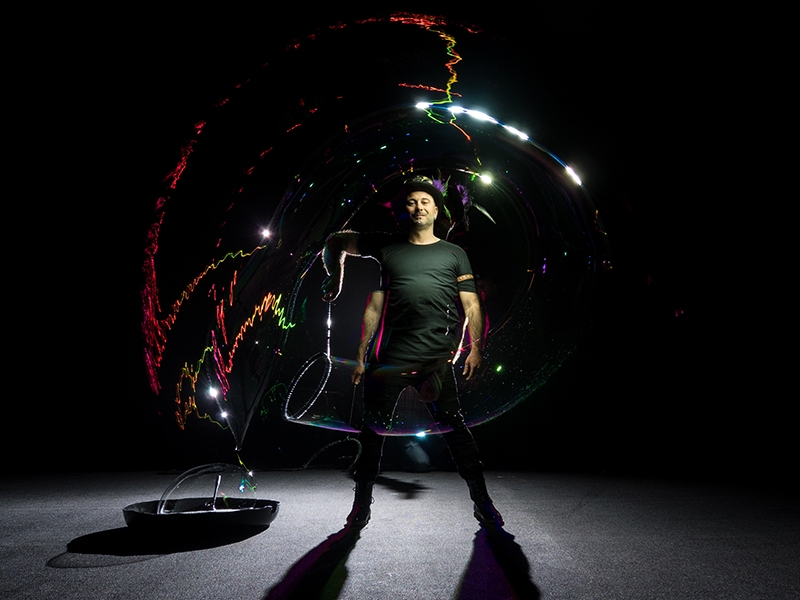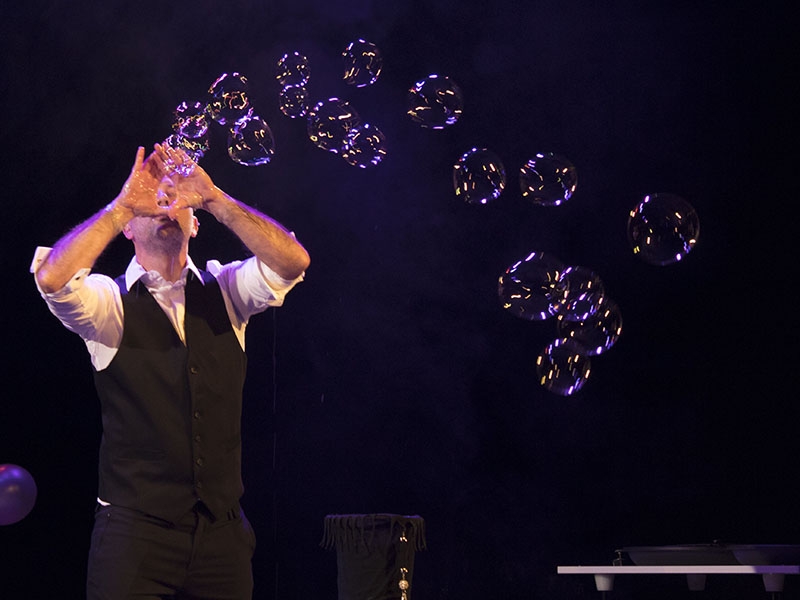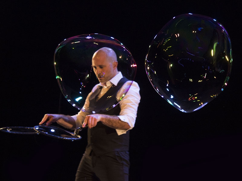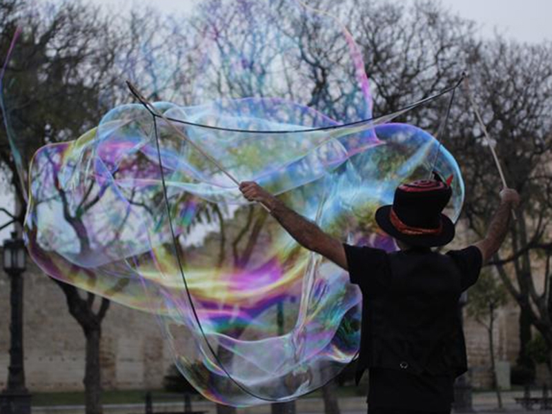 A show which leaves place for imagination where our artist plays and creates a beautiful show which will impress to anyone by these giant bubbles creations.