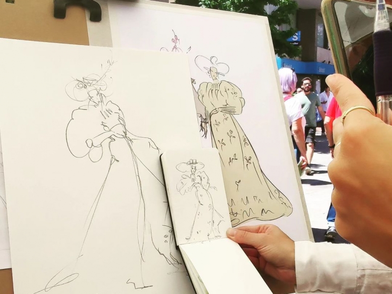 What better way to surprise your guests than with a portrait of their look, created on the spot? Her elegant, chic, and spontaneous style leaves everyone amazed, providing the opportunity to take home an original, personalized fashion sketch. This thoughtful detail not only captures the essence of the event but also becomes the best gift for any memorable event.