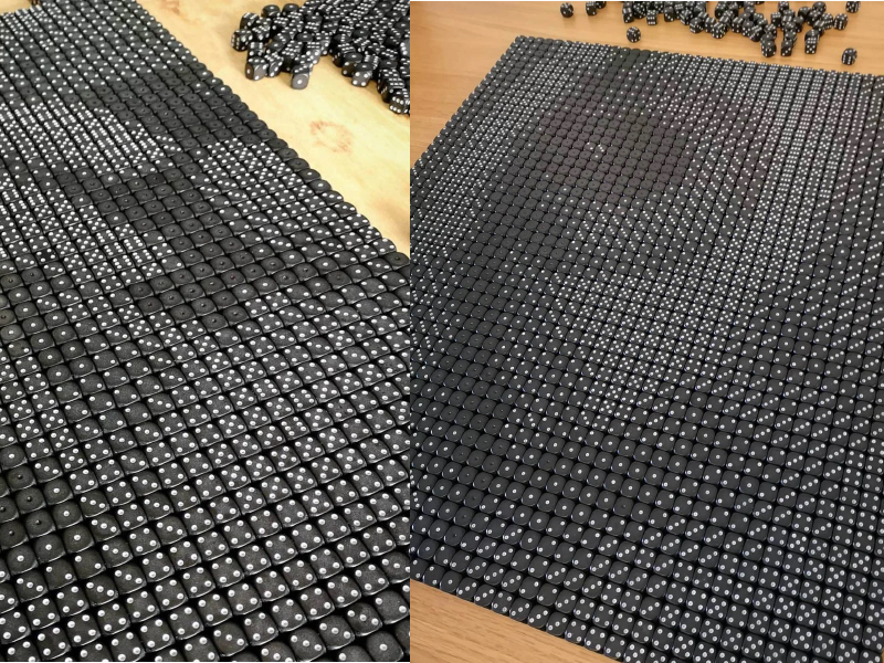 Dice art is a unique form of artistic expression that transforms ordinary dice into extraordinary visual works. By placing the dice to form complex patterns, drawings or abstract designs, the artist creates incredible works that are both fun and sophisticated. Each piece is a testament to the artist's creativity, patience and ability to manipulate a familiar object into something entirely new and visually stunning.