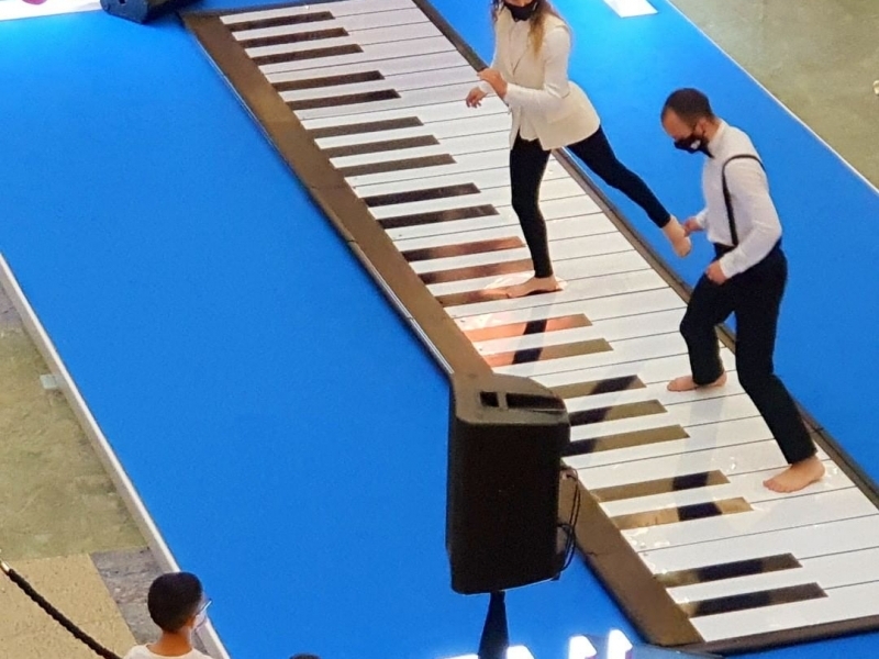 Imagine a massive, handmade piano, where each key comes to life with the rhythm of dance. Two professional dancers, with precise movements, create a visual and auditory symphony as they dance across the keys of this impressive giant piano. Inspired by the iconic scene from the movie Big with Tom Hanks, this performance seamlessly blends music, dance, and live interaction to deliver a truly spectacular show.