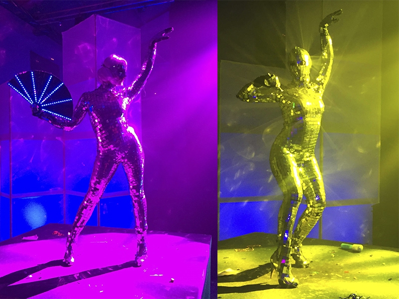 Thanks to a unique design of costumes made ??by hundreds of mirrors and 4 professional dancers, this show offers a mix of dance, laser, modernity and femininity. We use to propose a photo-call session as to get shining pictures with the artists and guests of the event.