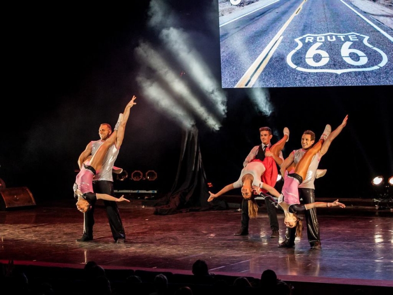A lively show that blends classic rock’n’roll with exciting acrobatic moves. The artists fill the stage with energy, rhythm, and fun, combining dance, lifts, and tricks that surprise the audience. With their strong connection to the music and playful style, they turn every performance into a moment full of joy and movement that people won’t forget.