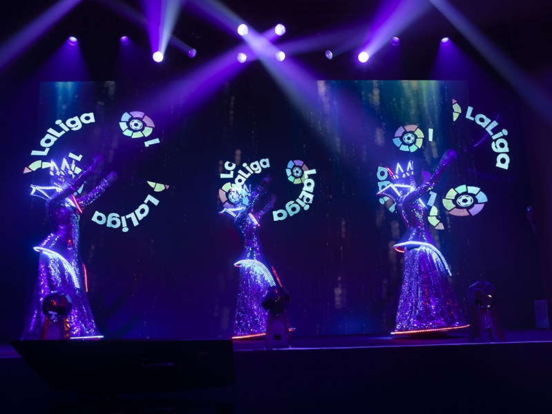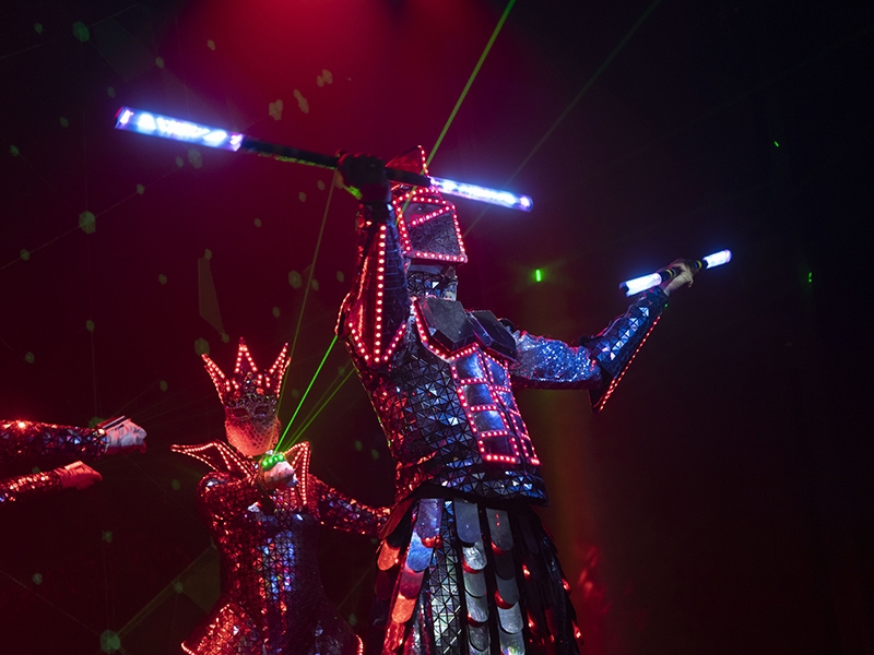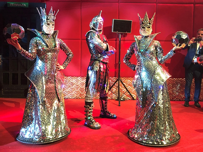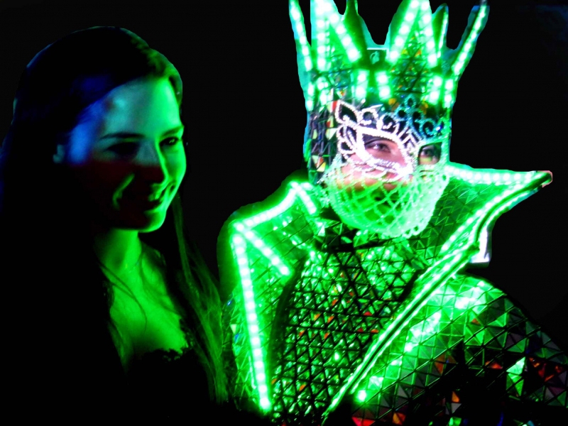 Sparkly show full of light, laser effects and colour led lights, bringing the maximum energy on stage. A stunning clothing made of hundreds of miniature mirrors and a careful look after staging to the smallest detail makes this artistic proposal one of the most striking ones of the moment. Furthermore, it can be personalised with the appearance of a logo or a word right at the end of the show in accordance with the objectives of the event. If the event requires it, there is the option of adding a close up performance, during which our artist can pose with the guests to take pictures, in a real photocall or in a more improvised manner.