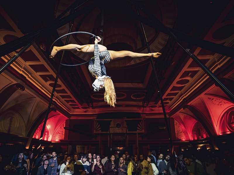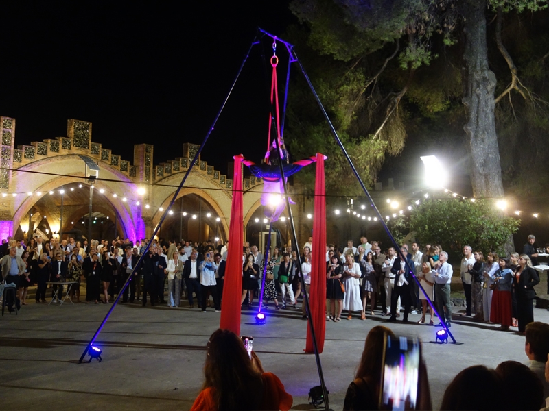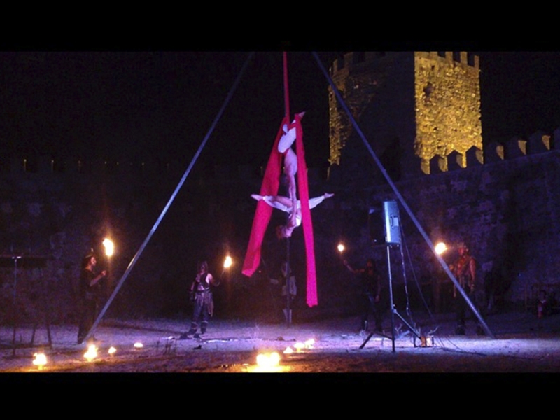 Great show performed by two artists who mix force and hand-balance. An original version is presented where the cards fly between acrobatics.